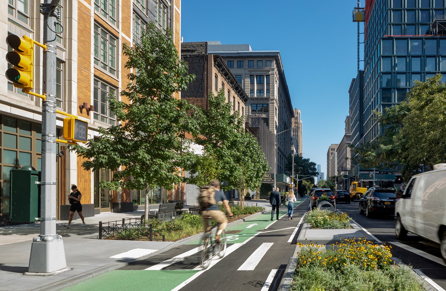 Lasst uns offene Interaktionen ermöglichen und die alltäglichsten Räume in etwas Besonderes verwandeln. Ein wirklich großartiges Beispiel für die Aktivierung gemeinsam genutzter Räume sind die Fußgängerzonen am Hudson Square in New York City. Die Plätze wurden geschaffen, indem „übrig gebliebene“ Teile von Straßen, die in den Holland Tunnel führen, für Fußgänger zugänglich gemacht wurden. Mit Sitzgelegenheiten und Kunst-installationen entstanden angenehme Orte für die Menschen.